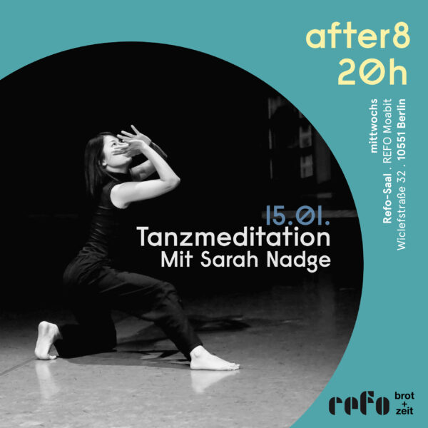 Die Tanzmeditation folgt keiner festen Choreographie, sondern unterstützt bei der Entwicklung von deinem eigenen Tanz. Jede*r einzelne Tänzer*in folgt intuitiv eigenen Bewegungen, die aus dem Moment entstehen. Wir bewegen uns von Stille zum Wahrnehmen, von Entspannung zur inviduellen Bewegung, von somatischer Recherche zum Tanz.