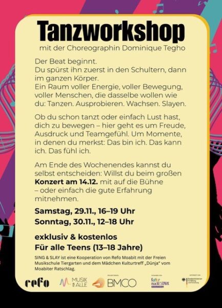 29. & 30.11. SING & SLAY Tanzworkshop für Jugendliche